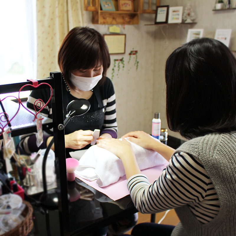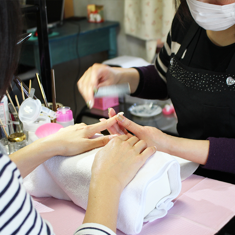 このころよりもともと絵やキラキラしたものが大好きで段々とやりたいことをやってみようと強く思うようになり大阪クラスタイルネイリストスクールで1年でディプロマを取得、その後数年間修行を重ね友人に喜ばれる事が励みになりプライベートネイルサロンをオープンしました